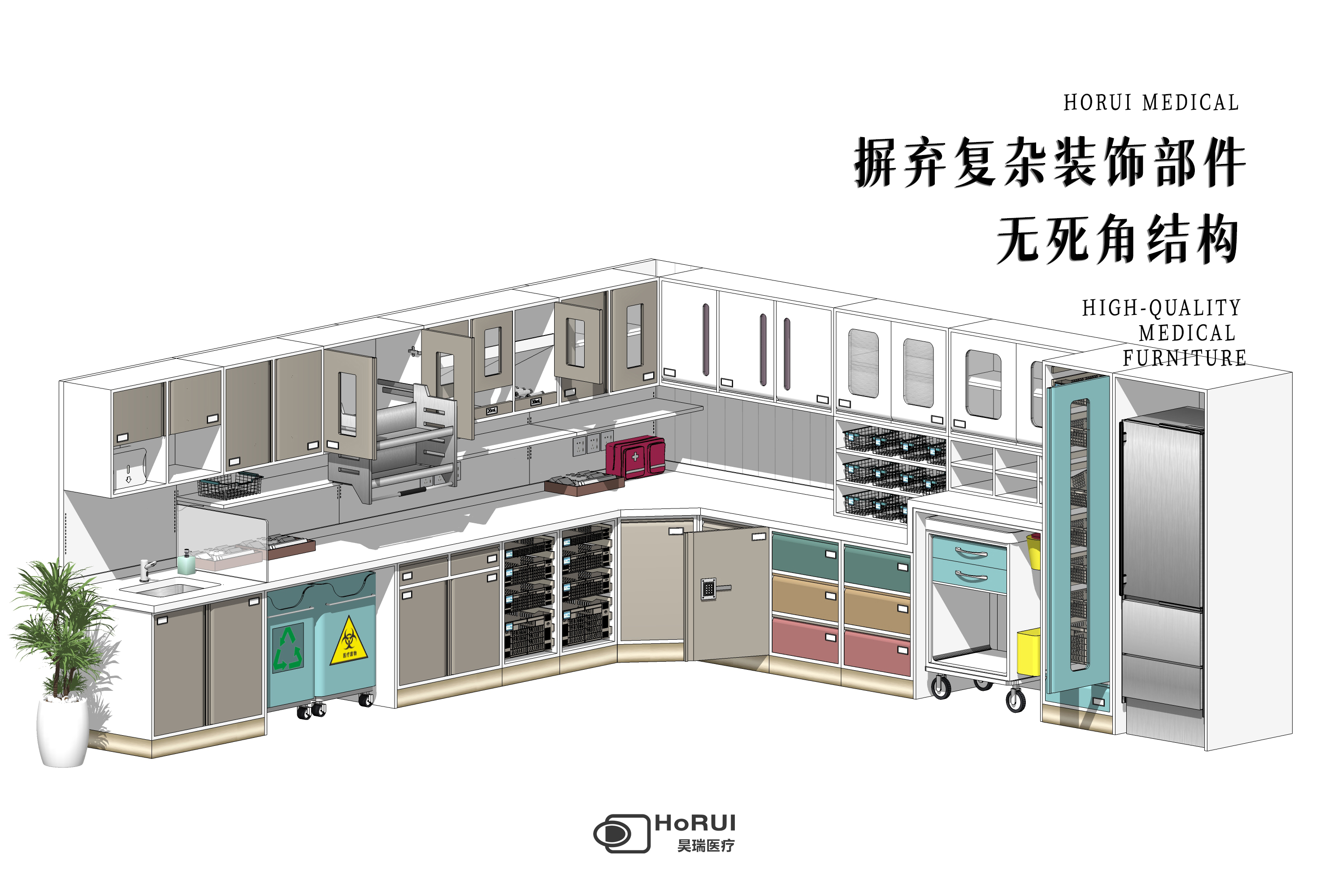 昊瑞医疗以 “少即是多” 为简约化可持续理念,通过 “减少冗余设计,聚焦核心功能”,实现 “资源节约” 与 “医疗高效” 的双赢。在结构简化上,摒弃复杂装饰部件 —— 去除多余的装饰线条和复杂造型,生产时减少材料消耗,同时柜体采用无死角结构,清洁时间缩短 。
