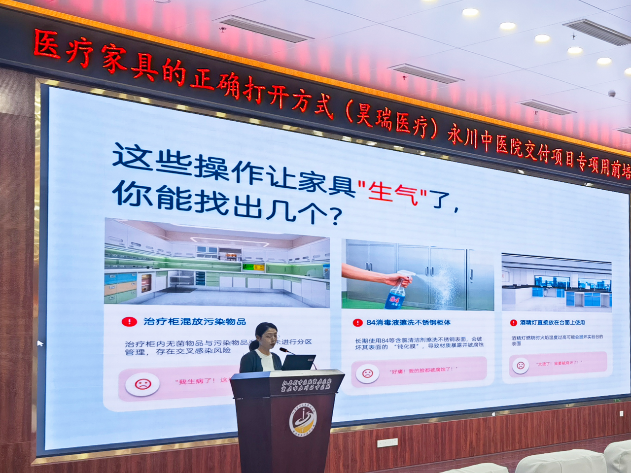 日前,昊瑞医疗在江苏中医院(重庆永川中医院)举办的这场名为 “医疗家具的正确‘打开方式’” 的培训,把医疗家具日常使用、维护中的 “小细节”,做成了关乎全院服务效率与安全规范的 “大文章”。